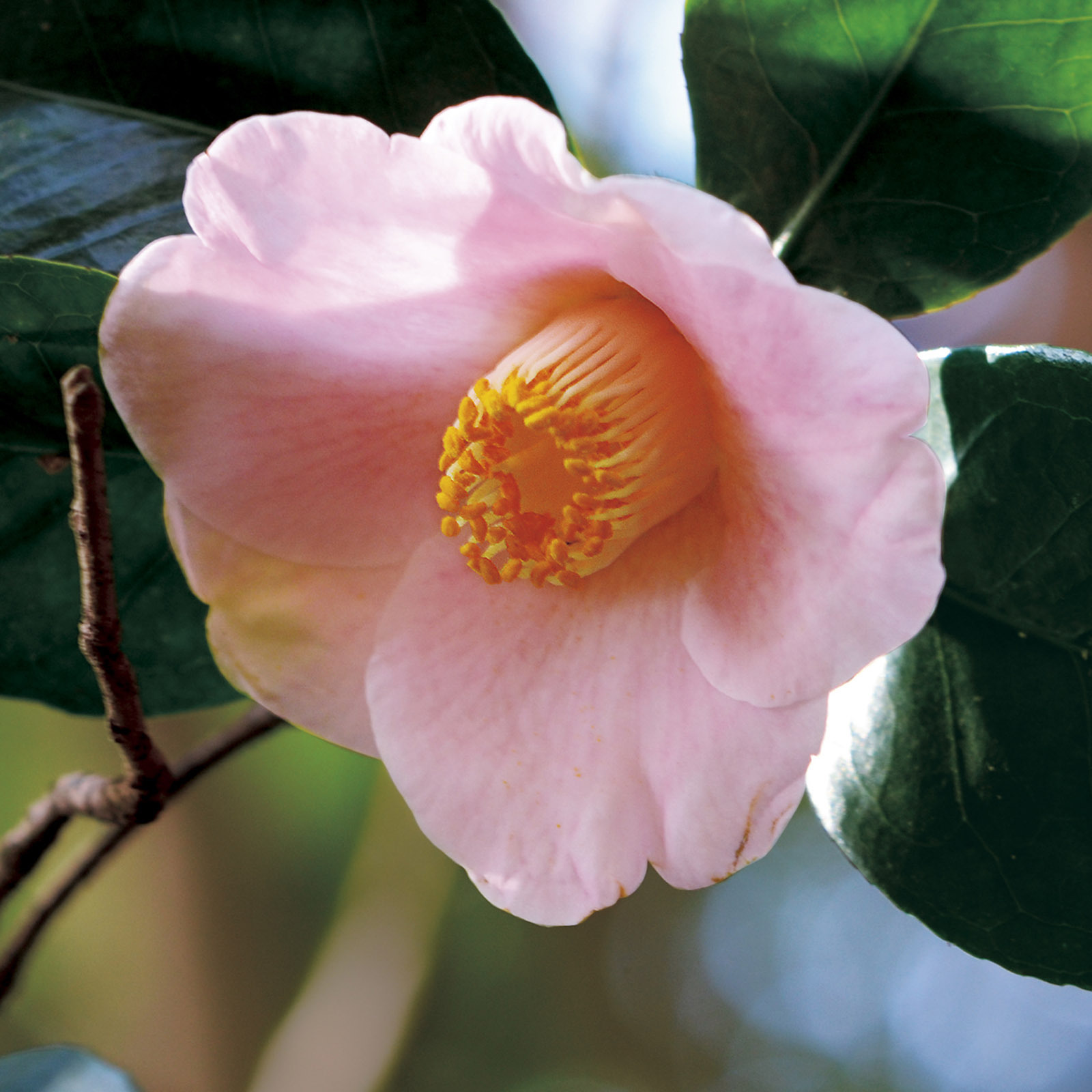 1-02 花弁は淡桃色の6弁で、杯状咲きからラッパ咲きの小輪。 花糸は100本に近い中程度の筒しべ。 花柱に毛が少し見られる。 場所 城山南駐車場からの坂道を30mほど登った左広場の奥。 1-01 1-03