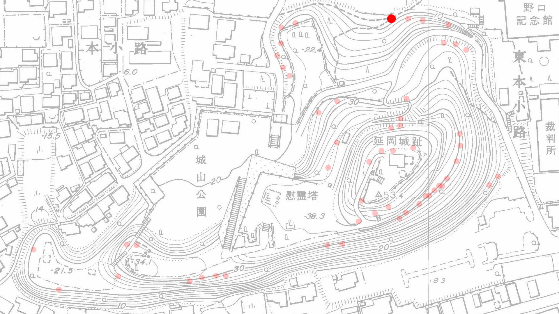 野口記念館裏駐車場からの城山登り口付近。