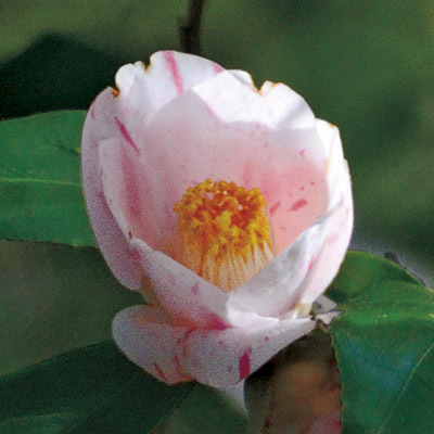 2-05 花弁は白地に桃色の縦絞りが鮮やかに出る筒咲きからラッパ咲きの極小輪。 花糸は白色で、数は多めの筒しべ。白花と咲き分ける。 場所 牧水歌碑広場入口の南側斜面上部。(水道管沿い) 2-04 2-06