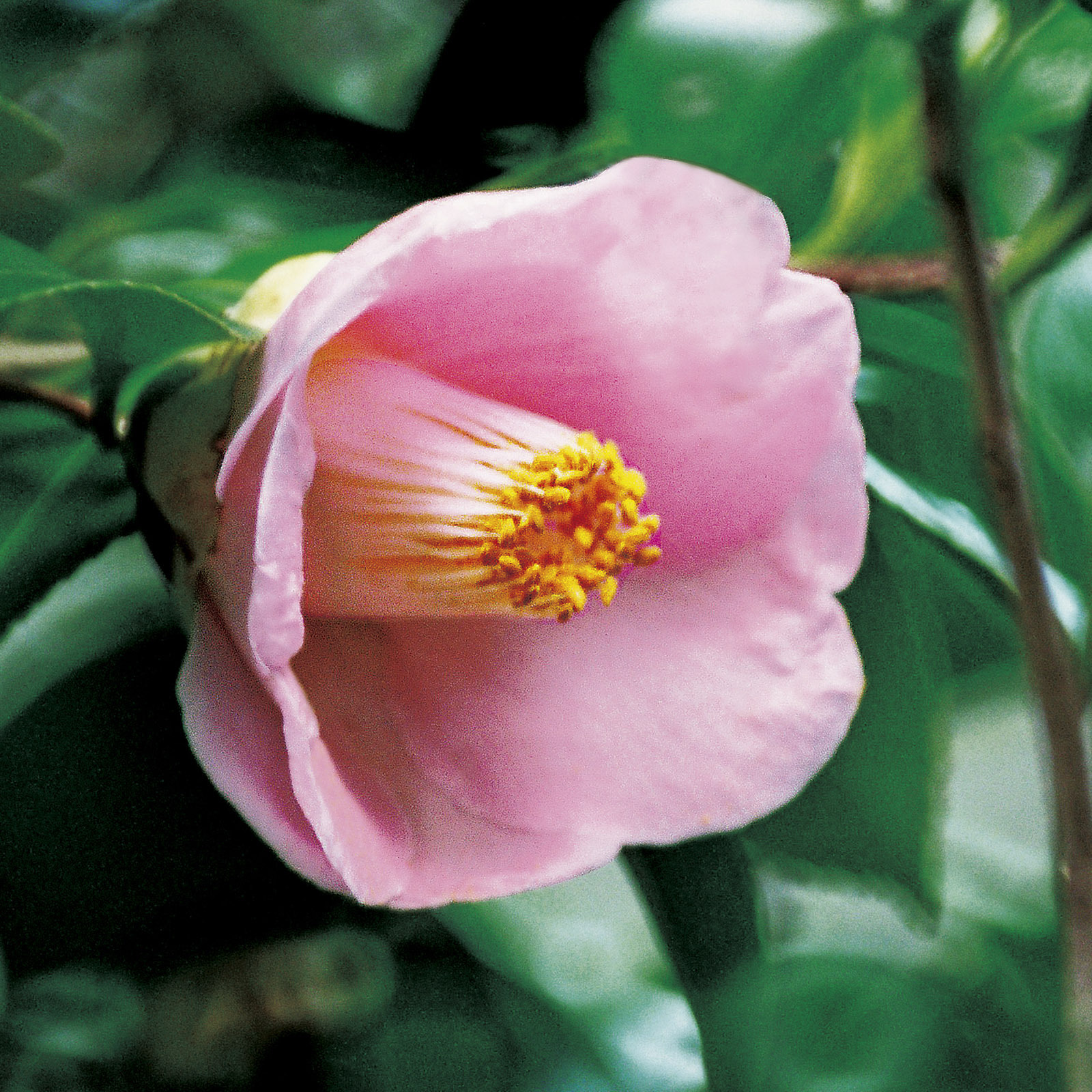 3-02 花弁は桃色で、少し弁脈が見られる5〜6弁で、ラッパ咲きから杯状咲きの中輪。 花糸は白色で、数は多く、筒しべで花柱に毛が見られる。 1996年に延岡城山ヤブツバキを楽しむ会が、延岡藩の藩主である内藤氏にちなんで「内藤」と命名。 場所 遊具広場に向かう階段の右手斜面。 3-01 3-03