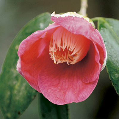 花弁は紅桃色の6弁で、弁脈が出る筒咲きの小輪