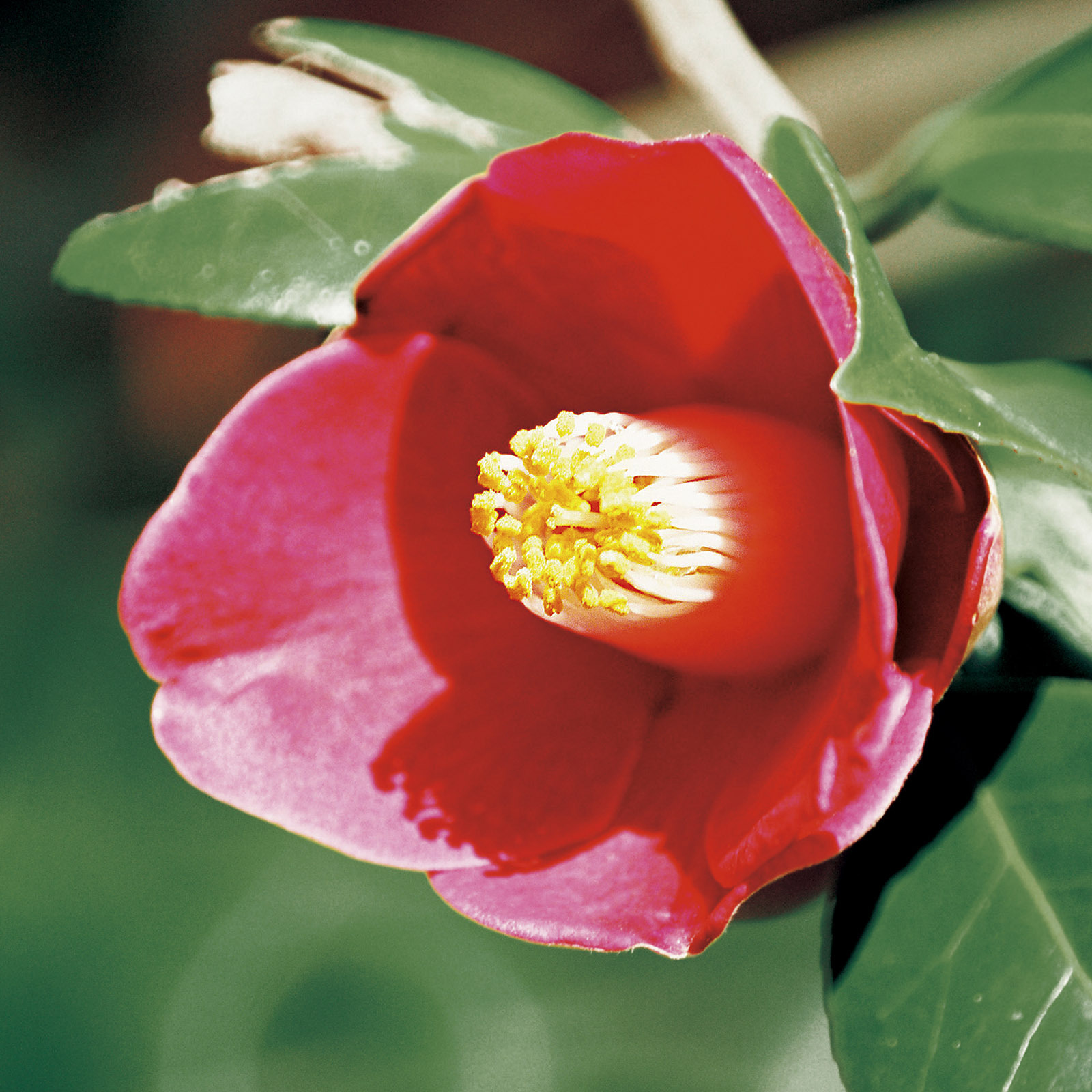 花弁は濃紅色の5〜6弁で、筒咲きの小輪