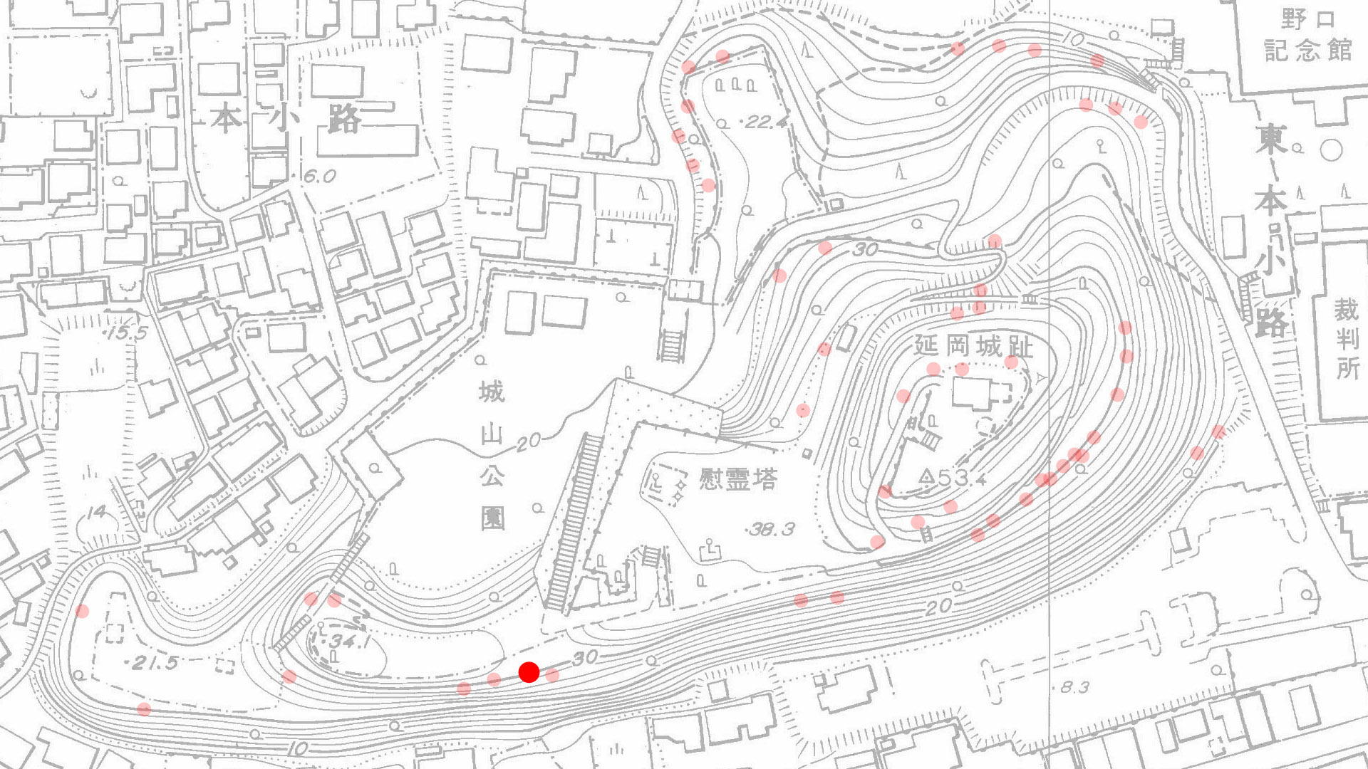 二の丸跡から階段を上がった突き当り。晩稲晩化の碑のある広場入り口付近。