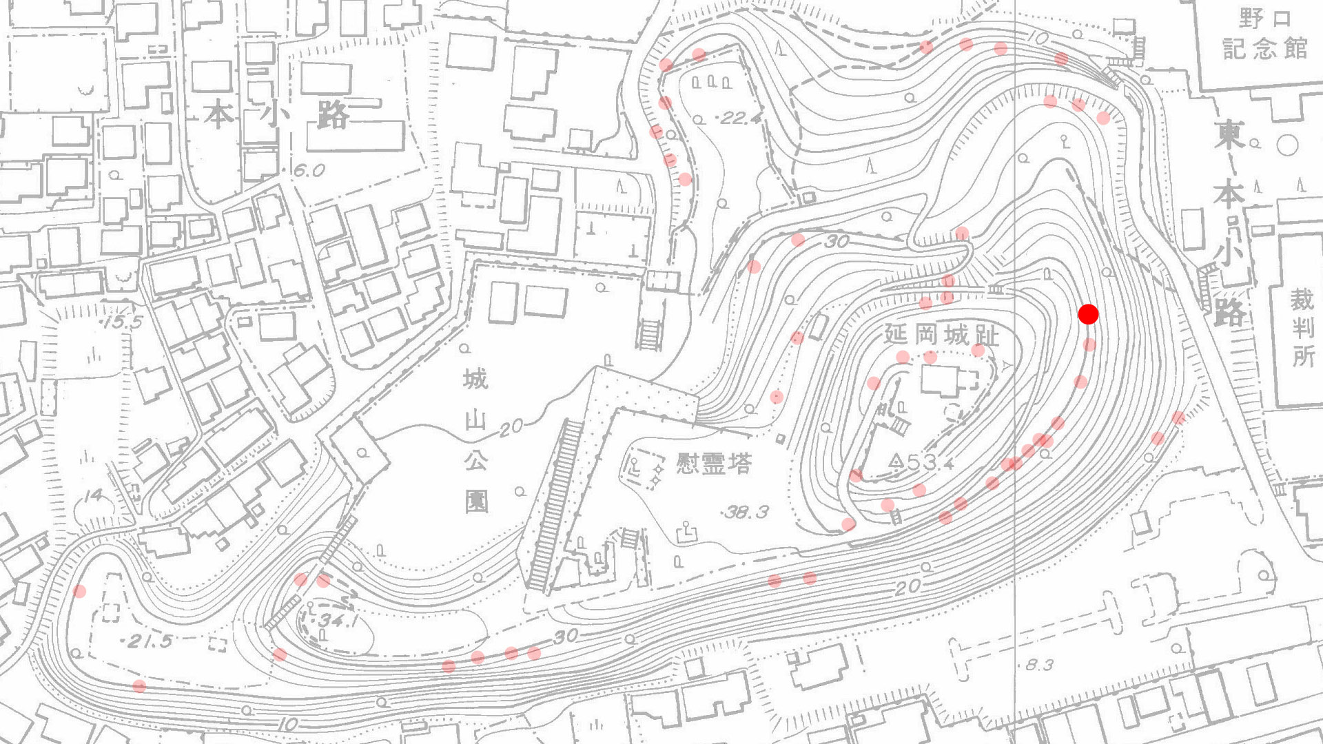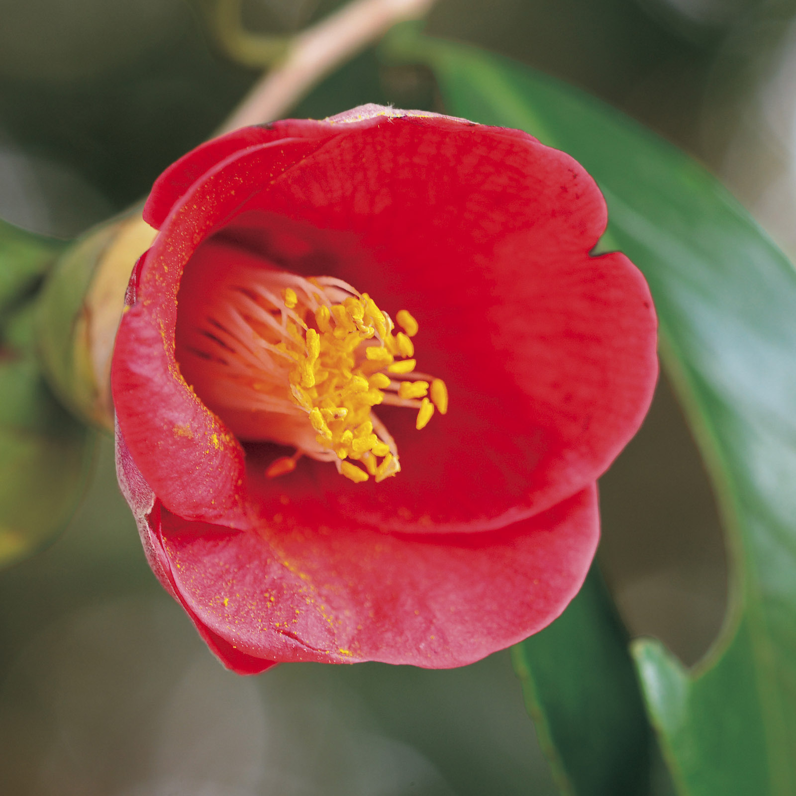 5-05 花弁は弁脈がはっきりと幾筋も出る濃紅色の5弁で、ラッパ咲きの小輪。 花糸は白色で、数は中程度の筒しべ。端正な顔立ちと濃い色は目を引く。 場所 後藤勇吉碑から降りた広場の東北角付近。 5-04 5-06