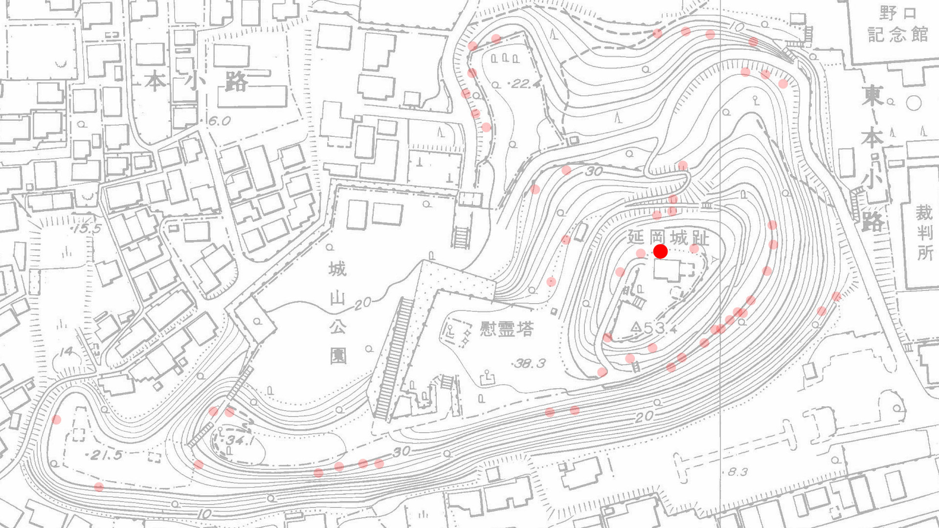 5-23 花弁は淡い桃色の5〜6弁で、ラッパ咲きの極小輪。 花糸は白色で、数は中程度の筒しべから閉じしべ。延岡城山ヤブツバキを楽しむ会が「城山」と命名。 場所 鐘撞堂管理棟の裏(西北角) 5-22 5-24